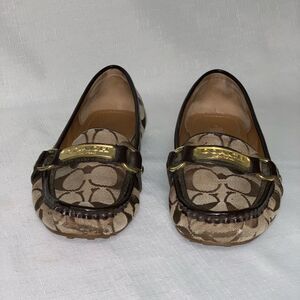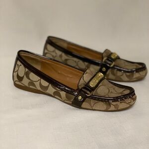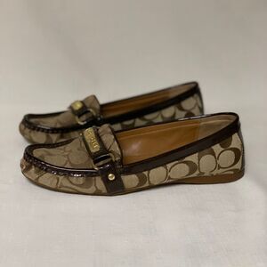 COACH Flats Women's 8 Felisha Signature C Loafer Khaki Tan Fabric Patent Leather