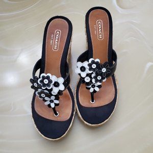 Coach Jesica Wedge Sandal Floral 3D Applique Thong Heels Slide
