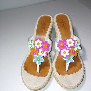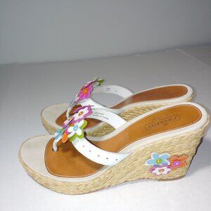 COACH Floral Leather Espadrille Wedge Jesica Sandals Size 10 White