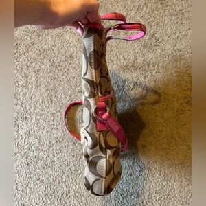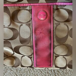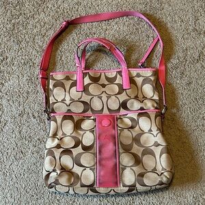 COACH Foldover Tote Shopper Signature Purse Pink Stripe F23304 Crossbody Bag Top