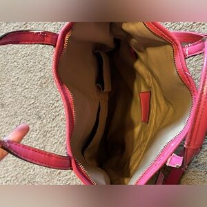 In great preowned condition see wear/staining on stripe interior is in excellent condition, wear/cracking on straps