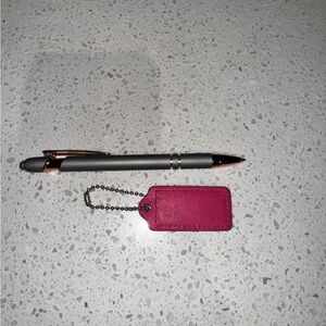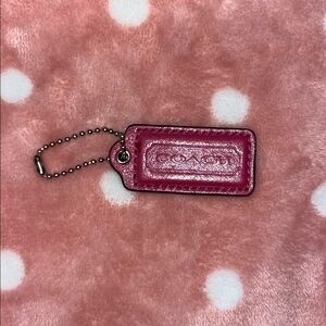 Stylish pink leather coach bag hang tag keychain with a silver durable ball chain. Perfect for replacing lost tags, adding for extra decor, or putting on other things as decor!
