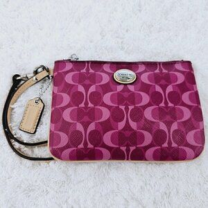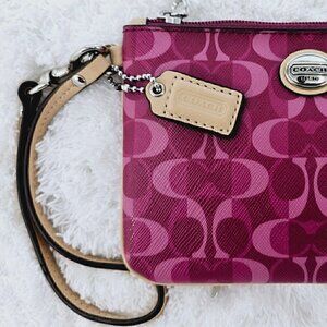 COACH Fushia Signature Logo Canvas and Leather Top Zip Wristlet Wallet Organizer