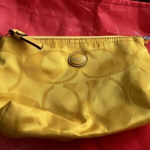 COACH GETAWAY SIGNATURE NYLON COSMETIC POUCH F77382 BRIGHT YELLOW
