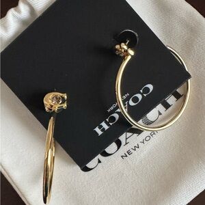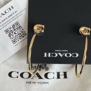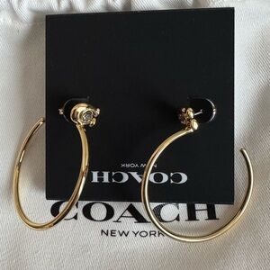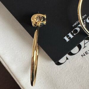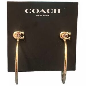COACH GOLD BRASS CRYSTAL LOGO HOOP EARRINGS MEDIUM LARGE