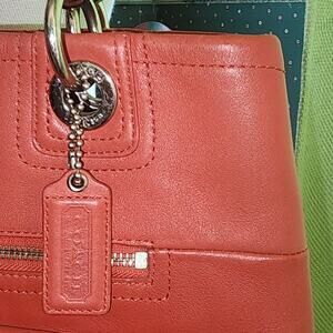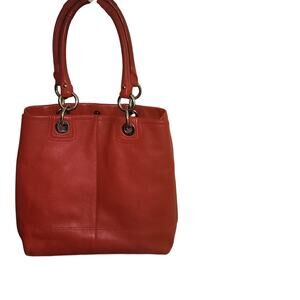 Vintage COACH Hampton Turlock North South Leather Satchel Orange/ coral Z27748.