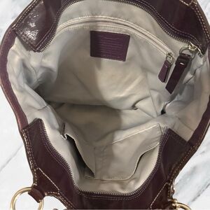 COACH Gallery Embossed Plum Purple Patent Leather Shoulder Bag Tote F19818 Y2K