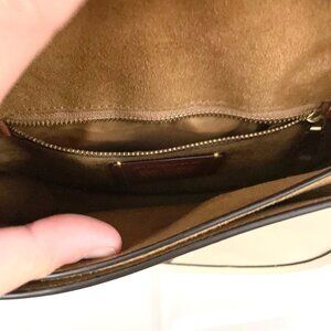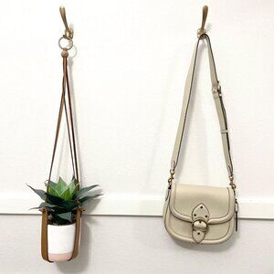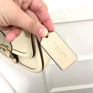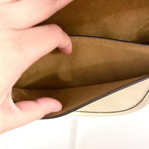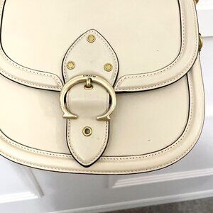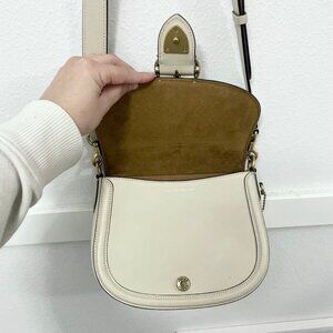 This is a gently used COACH Glovetanned Leather Beat Saddle Bag B4/Ivory One Size. In very good condition. Has some signs of wear on leather/minor discoloration on front flap, strap, and back. See all pics for condition.