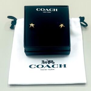COACH Gold-Tone Smiley Face Star Stud Earrings with Original Coach Pouch NEW