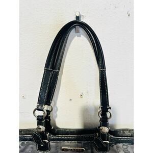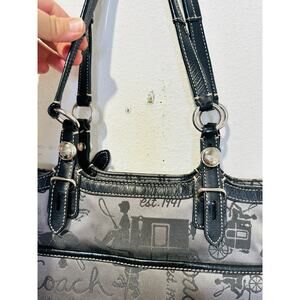 COACH Grey Black Stage Coach Horse Printed Fabric Y2K Leather Tote Handbag