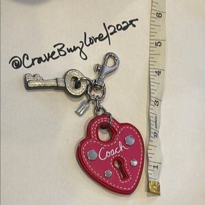 COACH HEART LOCK & KEY CHARM LEATHER STUDS SPELLOUT KEY CHAIN Y2K VGUC