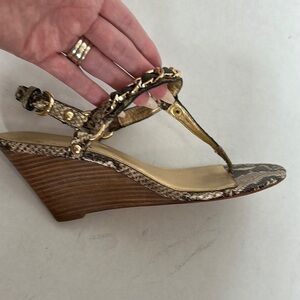COACH HONORA Python Snake t-strap wedge sandals w 8.5