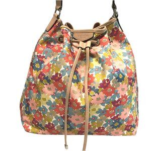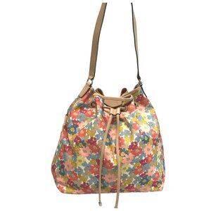 COACH Hadley Shoulder Bag Pink Floral Cynch Bucket Bag Flowers EUC