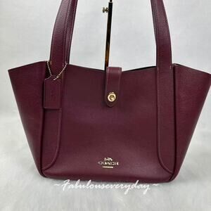 COACH Hadley Turnlock Tote Bag In Leather/Gold/Dark Wine CAL17 NWT