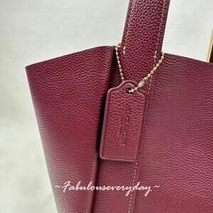 New With Tags, COACH Hadley Turnlock Tote Bag In Leather/Gold/Dark Wine CAL17 NWT from smoke and pet free environment.