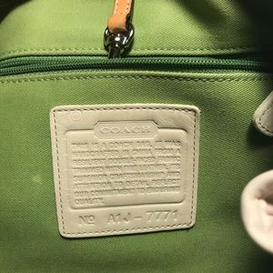 Authentic No. A1J-7771 COACH Tote canvas and leather bag. With a nice green lining to add some character. Great looking bag for that perfect sunny day or casual night.