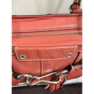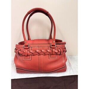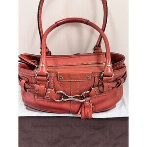 COACH Hampton Carryall Shoulder Bag F13084 Red Pebbled Leather Braided Tassel
