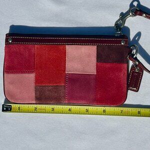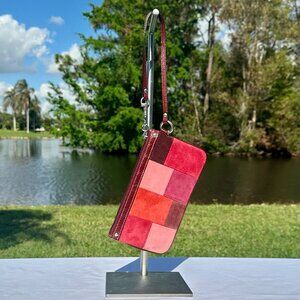 COACH Hampton Mosaic Suede Berry Patchwork Wristlet Leather Silver NWOT 140200