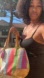 GUC. Retro vibes with THREE DOPE hangtags. Vibrant rainbow canvas with leather trim and pink lining, perfect for summer.