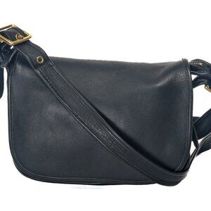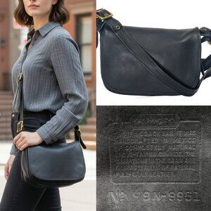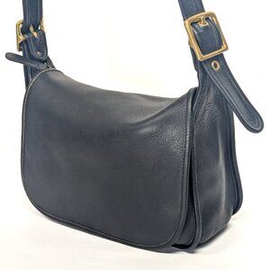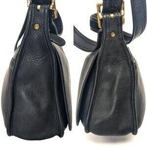 Authentic, vintage handmade in Mexico - incredible craftsmanship that's now lost to the ages. Soft, supple yet strong glove-tanned black leather, unlined interior, solid gold tone hardware, amazing adjustable strap with brass reinforced holes. Beautiful flap, large zipper and pull (buttery smooth), Coach creed in pics.