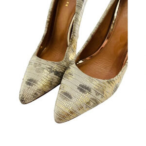 COACH Harlee Gold Snakeskin Embossed Pumps Pointed Toe Heels Shoes size 7