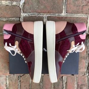 COACH High Top Sneakers C220 Tweed Oxblood/True Pink SZ 9