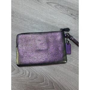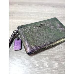 COACH Hologram Mermaid Iridescent Crossgrain Leather Corner Zip Wristlet 64938