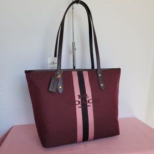 COACH Horse & Carriage Jacquard Fabric City Tote- Oxblood color ⭐