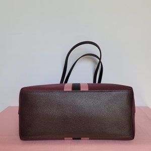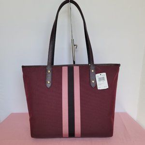 BRAND NEW WITH TAGS. GD/Oxblood color. (Burgundy, Pink, Dark Brown color) A classic design and spacious City Tote that goes everywhere in style with enough room to carry your essentials for everyday wear. Featuring the iconic Horse and Carriage motif set against sporty varsity stripes. Crafted of lightweight Jacquard fabric and Polished pebbled leather trim.
