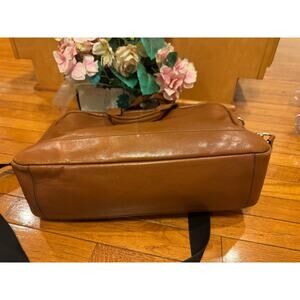 Leather| Inside zip, cell phone and multifunction pockets| Outside zip pockets| Zip-top closure, fabric lining| Handles with 4 1/2" drop| Detachable strap for shoulder or crossbody wear| 15 1/2" (L) x 11 3/4" (H) x 4 3/4" (W). COACH MSRP:$550