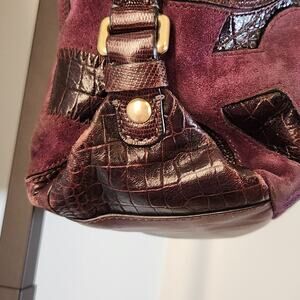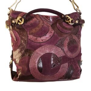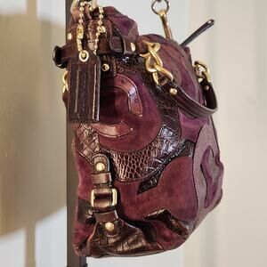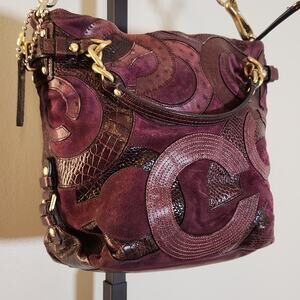 Vintage Coach Inlaid C Brooke shoulder bag in plum purple leather and suede