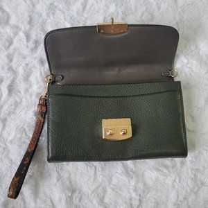 (4A-011) COACH Ivy Green Crocodile Embossed Leather Envelope Flap Wallet Convertible