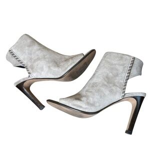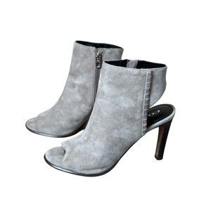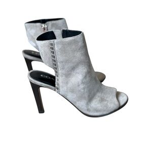 COACH Izzie Open Toe Shooties Gray Suede Booties Pumps 9 Grey Neutral Designer