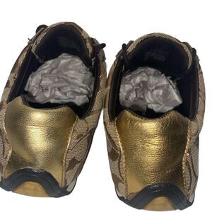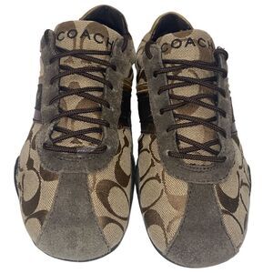 COACH JAYME Wm’s Sz 6 Brown Suede Trim Tan Signature C Fabric Sneaker Shoes