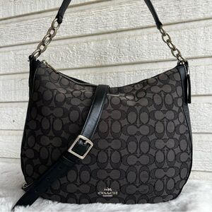 COACH Jacquard Black Signature Hobo Chelsea 32 Hobo Laurel Teri Crossbody 37769