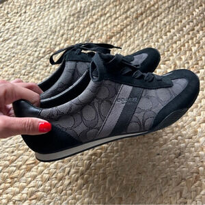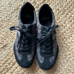 COACH Jacquard Black Suede Kelson Lace Up Sneakers Outline Signature / Size 8.5
