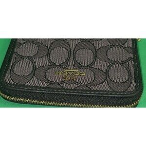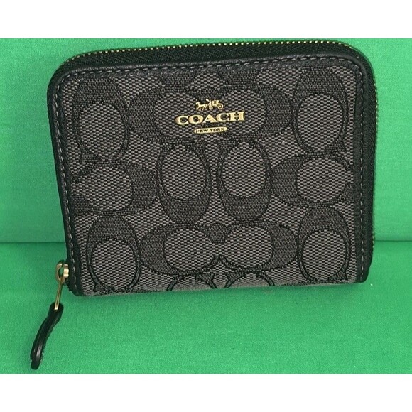 COACH Jacquard Small Zip Around Wallet In Signature Denim CP431 Black/gray Purse