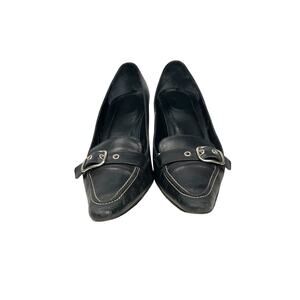 COACH 'Jayne" Italian Black Leather Pumps Buckle Detail 7B Glam Regency Y2K
