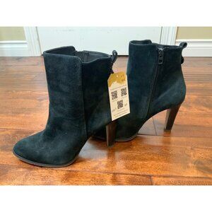 COACH Jemma Black Leather Suede Zip-Up Block Heel Ankle Boots, Size 9.5 (US)