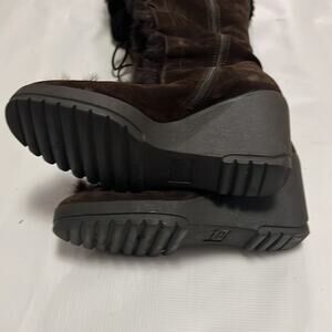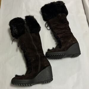 COACH KARITA FUR & SUEDE TRIM TALL ESPADRILLE WEDGE BOOTS SIZE 7.5 B