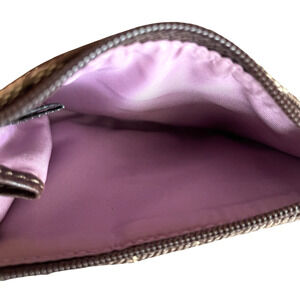 COACH Khaki Signature C Brown Leather Trim Top Zip Gold Coin Logo Pouch Skinny ID Change Purse. Approximately 4.5" x 3". Interior Lavender Sateen Fabric. Excellent Condition. Ships within 24 hours.