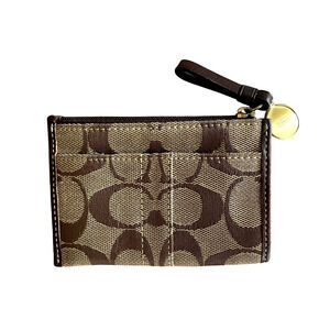 COACH Khaki Brown Signature Top Zip Gold Coin Logo Pouch Skinny ID Change Purse