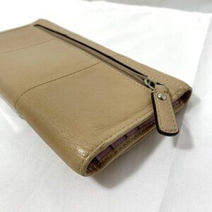 COACH Kristin Beige Leather Credit Card ID Window Trifold Wallet Lavender INT