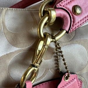 COACH Kristin Signature Large Hobo Tan Jacquard Pink Leather 2 Way Bag