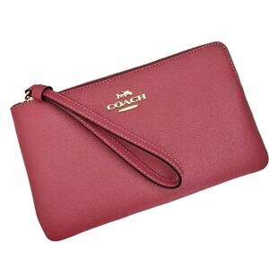 COACH LARGE CORNER ZIP WRISTLET WALLET IN PINK STRAWBERRY HAZE