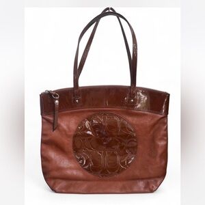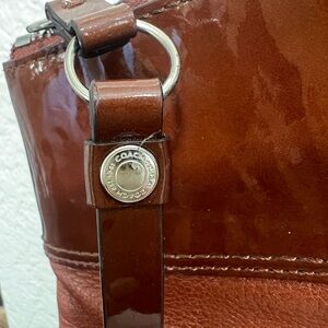 COACH LAURA SIGNATURE gorgeous Cognac Brown patent leather zipper tote