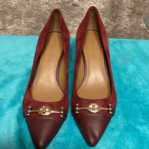 COACH LEATHER AND SUEDE KITTY HEEL PUMP SZ 6.5