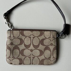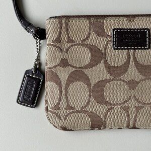 COACH LEATHERWARE BROWN & TAN MONOGRAM C Logo Wristlet Wallet Purse Y2K Canvas