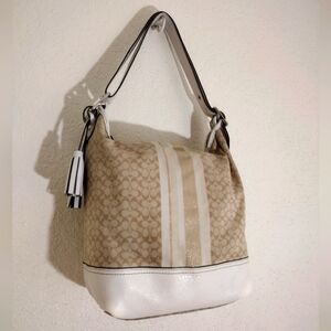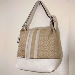 COACH LEGACY Khaki Ivory Signature Glitter Stripe Convertible Duffle Bag