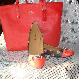 This listing is for shoes, Gorgeous Brand new and never worn Ballet Flat Size 7 M / Medium width. Polyurethane lining and foot bed. Style Q9085. Shoe color on box listed as Mahogany / Pink Flowers .The toe cap is coach "Bright Red" and is actually a Beautiful Deep Reddish Orange. So. if you have a coach handbag listed as "BRIGHT RED" THIS PAIR OF SHOES WILL MATCH PERFECTLY.